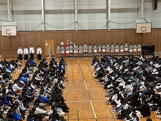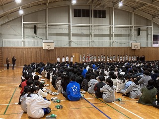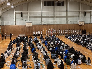 第3回考査の最終日、体育館にて壮行会を行いました。