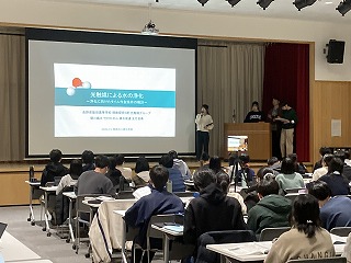 発表スライドは写真や動画、イラストや図表などを用いながら、見やすく工夫がなされており、堂々と発表している姿が印象的でした。